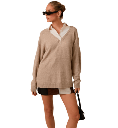 This long sleeve pullover sweater top features a classic shirt collar layered underneath for an effortless two-in-one look. Designed with a soft, s...