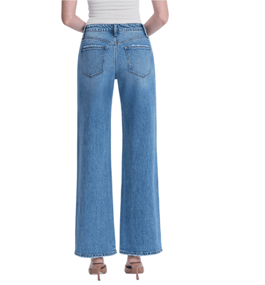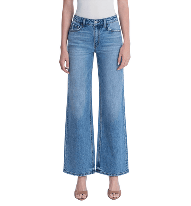 These high-rise, medium wash wide leg jeans feature a full-length silhouette with a clean, finished hem for a polished everyday look. Designed in c...
