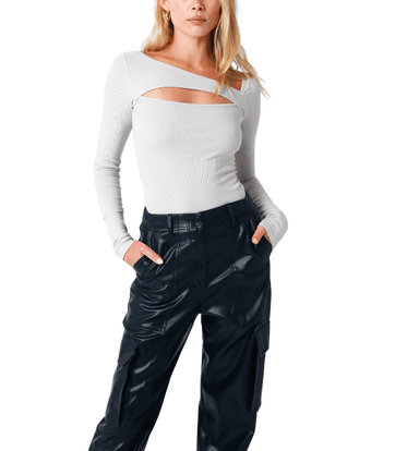 View full detailsO-Ring Detail Neckline Long Sleeve Top. A sleek knit top featuring an O-ring detail at the neckline that creates a subtle keyhole effect. Long slee...