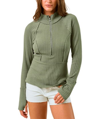 View full detailsThis half zip-up long sleeve top is crafted from a ribbed cotton-spandex blend for a comfortable, flattering fit. It features a zip-front neckline ...
