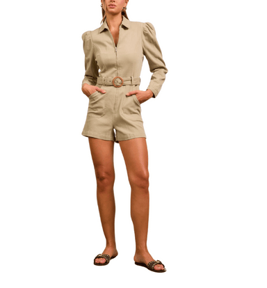View full detailsThis long sleeve romper is crafted from 100% cotton for a comfortable, breathable feel. Designed with a flattering belted waist, it offers a polish...