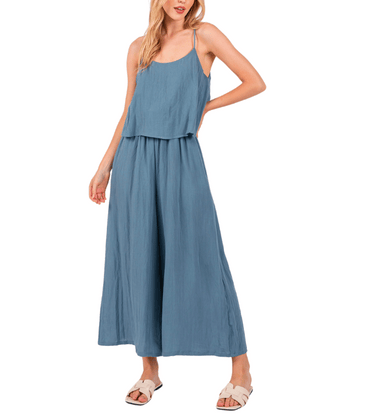Step into comfort and style with the Keira Flowy Cami Top Jumpsuit. This versatile piece features a flowy cami top that drapes beautifully, paired ...