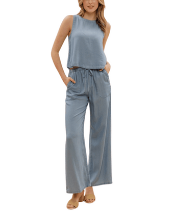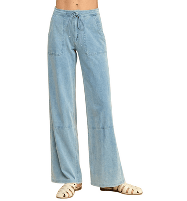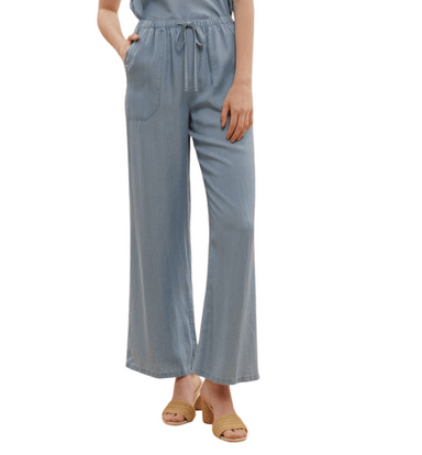 These wide leg chambray pants feature a comfortable drawstring waist and a relaxed, flowy fit—perfect for effortless summer style.Matching top sold...