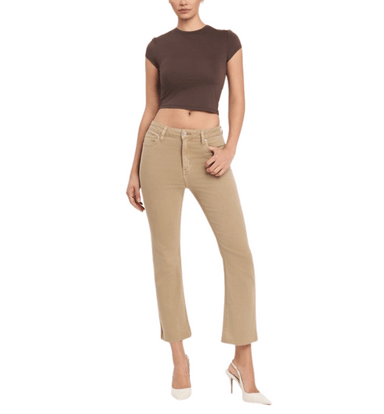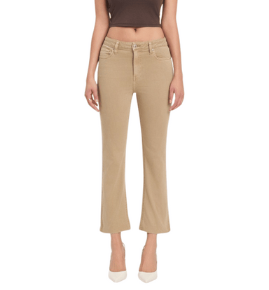 Meet the Emery High Rise Cropped Bootcut in Minks—a stylish tan denim with a clean wash and edgy scissor-cut hem. Featuring a 10.5-inch rise and 26...