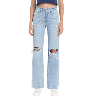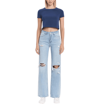 Our High Rise Distressed Detail Wide Leg Jeans combine bold style with all-day comfort. Featuring a 10 1/2" rise and a flattering wide-leg silhouet...
