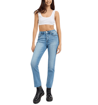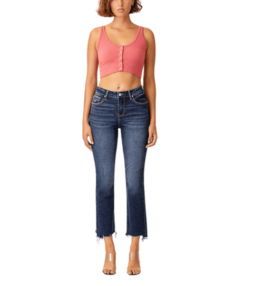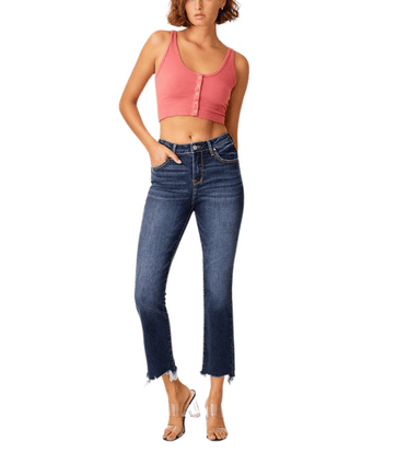 Our Tummy Control High Rise Crop Straight Raw Cut Hem Jeans offer a flattering, curve-enhancing fit with a 10 1/2" rise and a cropped length. The r...