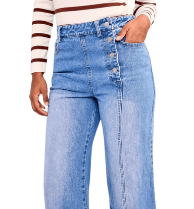 These Front Two Pocket Stretch Wide Leg Denim Jeans combine comfort and style with a flattering high-rise fit. Crafted from stretch denim (97% cott...