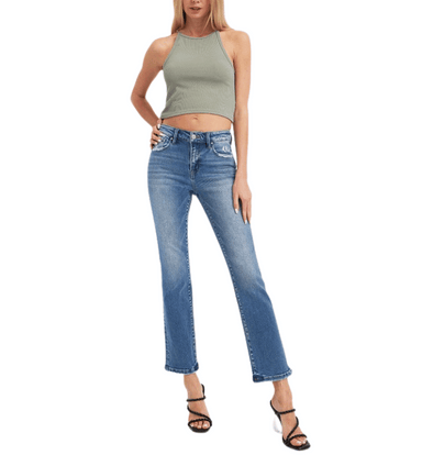 Discover the perfect blend of comfort and confidence with our Tummy Control Mid Rise Crop Straight Jeans. Designed with a 9.75-inch rise and a 27.5...