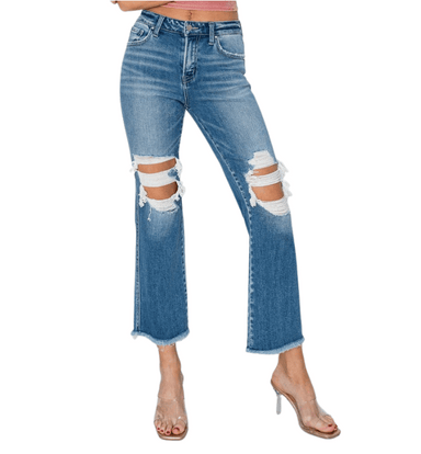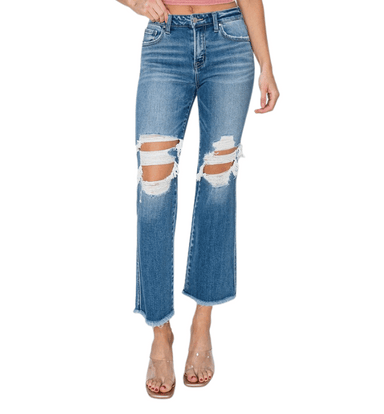 Meet your new favorite jeans: our Mid Rise Raw Edge Hem Straight Jeans! With a flattering 9 1/2" rise and a trendy raw edge hem, these jeans hit ju...