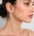 Size : 1.6" X 1.6" Omega Back Elevate your everyday style with these textured coil hoop earrings. Featuring a unique ridged design that wraps seamlessly around the hoop, they bring bold sophistication and timeless charm, perfect for dressing up casual outfits or adding flair to evening looks. Brass Gold Dipped Hypoallergenic Lead and Nickel Compliant Made In Korea 14K Gold Dipped Textured Hoop Earrings White Gold Dipped Textured Hoop Earrings