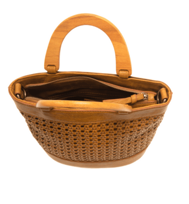 View full detailsReal wood handles meet braided vegan leather in this effortlessly stylish satchel tote. Compact yet roomy, this bag features multiple interior pock...