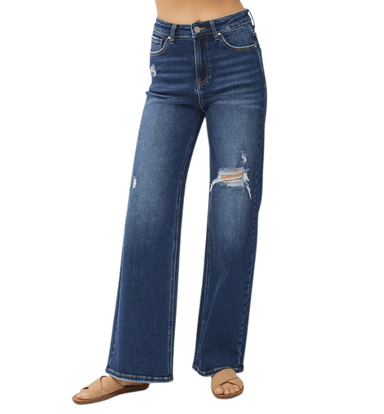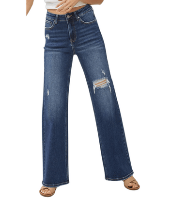 Our High Rise Distressed Detail Wide Leg Jeans combine bold style with all-day comfort. Featuring a 10 1/2" rise and a flattering wide-leg silhouet...
