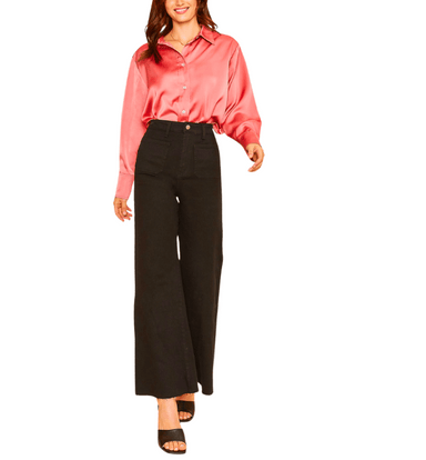 These Front Two Pocket Stretch Wide Leg Denim Jeans combine comfort and style with a flattering high-rise fit. Crafted from stretch denim (97% cott...