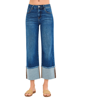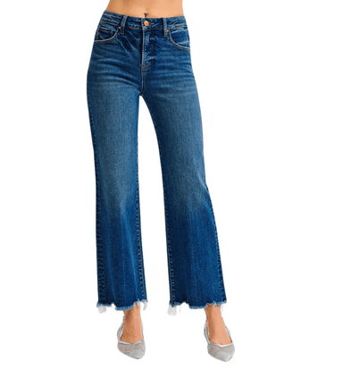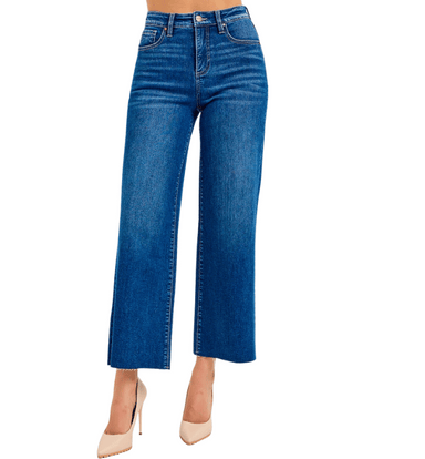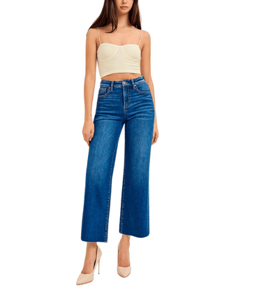 The Ava Tummy Control Crop Wide Leg Jeans are the perfect blend of comfort and style. Crafted in a dark wash denim, these jeans feature a flatterin...