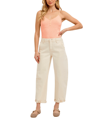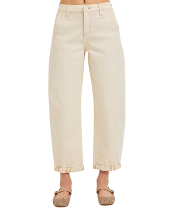 These high-rise relaxed barrel cuffed pants offer a modern, laid-back fit with a flattering 10 3/4" rise and optional cuffed hem. Designed with a s...