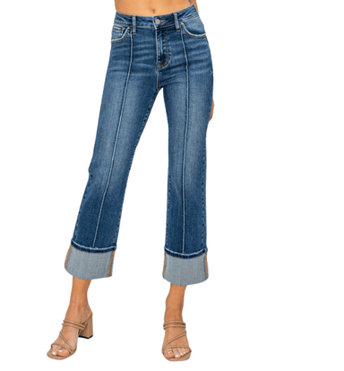 These high-rise ankle straight cuffed jeans offer a flattering 10 1/2" rise and a versatile fit with a 25 1/2" inseam after cuffing (29" uncuffed)....