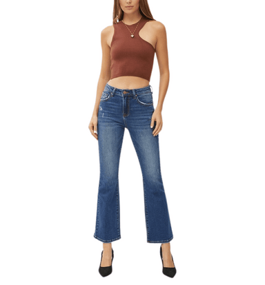 Embrace effortless edge with the Marie Crop Flare Jean. Featuring a flattering high-rise waist and crafted from comfortable stretch denim, these je...