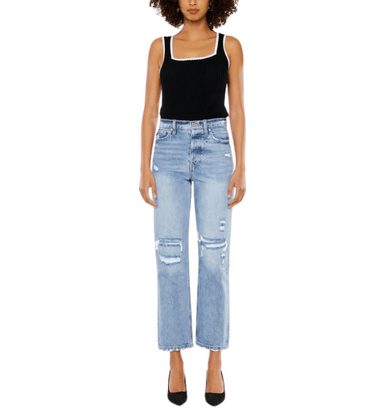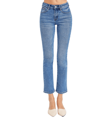 Discover the perfect blend of comfort and style with the Kaylina Mid Rise Straight Leg Jean. These jeans are designed with a flattering mid-rise an...