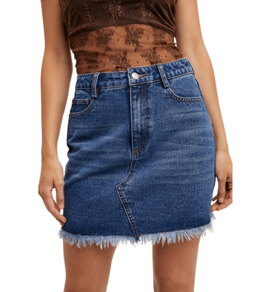 Elevate your casual wardrobe with the Helena High Waist Raw Hem Denim Skirt, a perfect fusion of edgy style and classic charm. This mini denim ski...