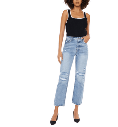 Our Tummy Control High Rise Crop Straight Raw Cut Hem Jeans offer a flattering, curve-enhancing fit with a 10 1/2" rise and a cropped length. The r...