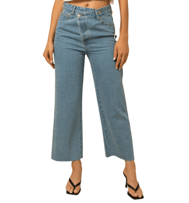 Introducing our stylish and comfortable asymmetrical button wide leg cropped jeans! These trendy jeans are the perfect addition to any fashion-for...