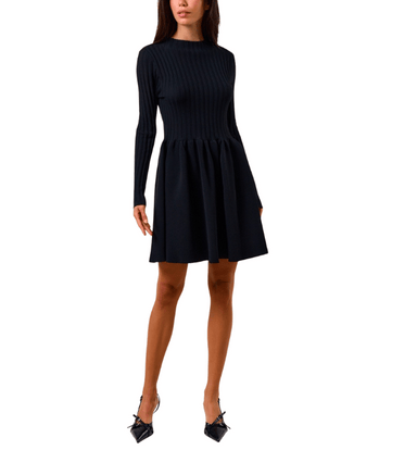 This ribbed sweater mix flared mini dress features long sleeves and a flattering fit-and-flare silhouette. Crafted from slightly sheer ribbed sweat...