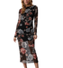 This Boat Neck Shirring Detail Floral Maxi Dress combines effortless femininity with a flattering, modern fit. Designed in a stretch floral mesh fabric, it hugs your curves while offering comfortable movement. The elegant boat neckline and delicate shirring details create a romantic, sophisticated silhouette that flows beautifully to a maxi length. Perfect for any special occasion or evening out, this dress exudes timeless charm. Model is 5'10" with measurements 32" bust, 25" waist, and 35" hips, wearing a size small.