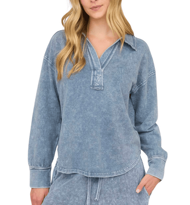 View full detailsWashed Long Sleeve U-Hem Polo Knit Top. Easygoing and effortlessly cool. This knit polo features a collared V-neckline, long sleeves, and a relaxed...