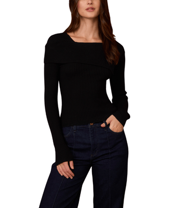 View full detailsAsymmetrical Fold Over Long Sleeve Sweater. Sleek and modern, this knit pullover features an asymmetrical fold-over neckline and long sleeves. The ...