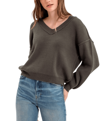 View full detailsExposed Seam V-Neck Pullover Knit Sweater. Effortlessly cozy with a modern edge. This relaxed-fit pullover features a V neckline, drop shoulders, e...