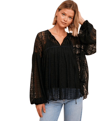 This lace peasant blouse features a flowy, oversized silhouette with delicate piped accents and a detachable camisole slip for easy layering. Desig...