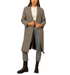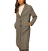 This herringbone long sleeveless coat offers a sleek, tailored look with its classic black herringbone pattern and elongated silhouette. Perfect for layering over sweaters or blouses, it adds an elevated touch to both casual and dressed-up outfits. The model is 5'10" with a 33B bust, 23.5" waist, and 35" hips, wearing a size small.
