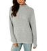 This long sleeve mock neck knit top features a soft gray knit and a relaxed tunic-style fit, making it an easy, versatile piece for everyday wear. The mock neckline adds a polished touch, while the longer length pairs perfectly with leggings or denim. The model is 5'10" with a 33B bust, 23.5" waist, and 35" hips, wearing a size small.