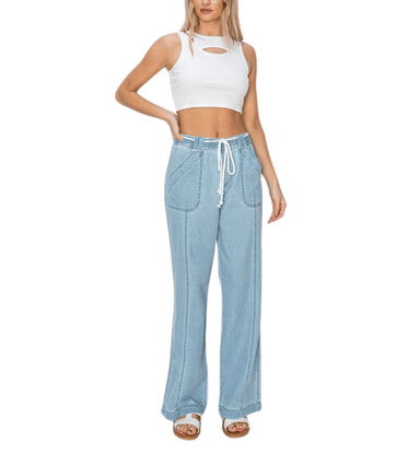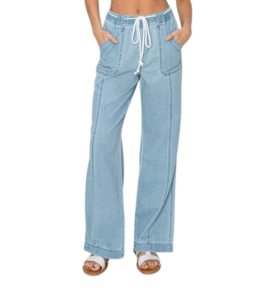 These wide leg chambray pants feature a comfortable drawstring waist and a relaxed, flowy fit—perfect for effortless summer style.Matching top sold...