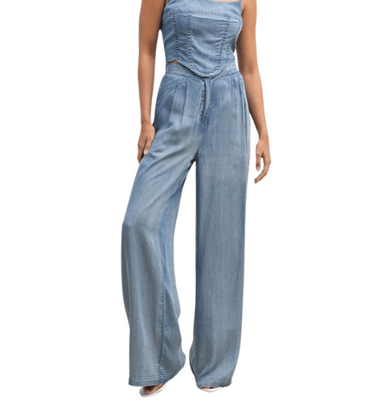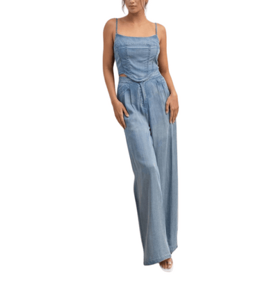 WASHED PLEATED HIGH WAIST WIDE LEG CHAMBRAY PANTS *matching top sold separately* Discover effortless elegance with our Washed Pleated High Waist Wi...