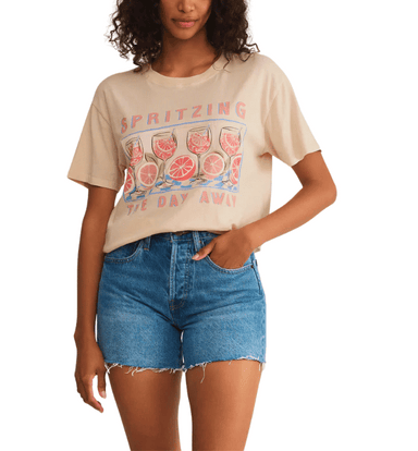 Z SUPPLY: Citrus-soaked and playful, this relaxed tee brings the vibes with a colorful screen print with the phrase "Spritzing the Day Away." Made...