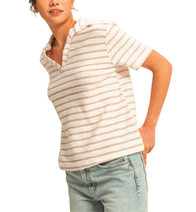 Stay cool and casual in this striped top featuring a collared neckline, short sleeves, and a relaxed silhouette. Easy to style with denim shorts an...
