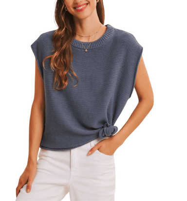 The Stacy Sweater is a sleek sleeveless knit with a classic round neckline. Lightweight and versatile, it’s perfect for layering or wearing on its ...