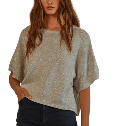 Lurex Knit Short Sleeve Sweater Top. Add a touch of shimmer to your everyday style with this soft knit short sleeve sweater. Designed with subtle l...