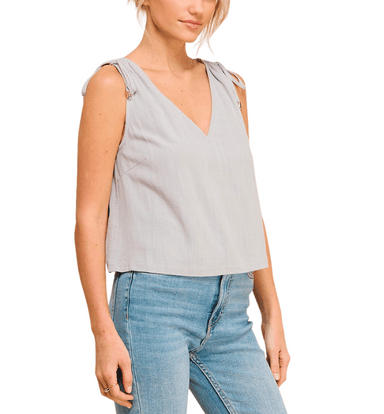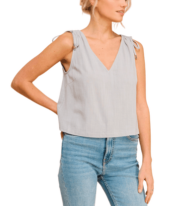 Lightweight and breathable, this V-neck sleeveless tank features a linen-cotton blend and adjustable shoulder drawstring details for a relaxed, cus...