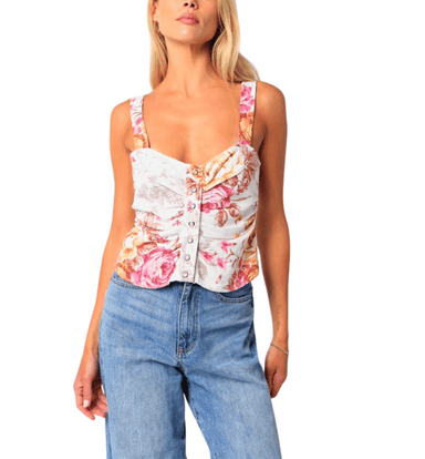 The A Moment In Time Corset Sweetheart Top features a romantic floral print and a flattering corset-inspired silhouette. Designed with a sweetheart...