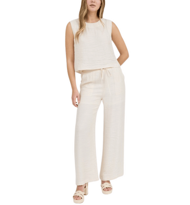 Elevate your everyday look with this sleeveless woven top, featuring a round neckline, functional back buttons, and a modern cropped silhouette. Th...