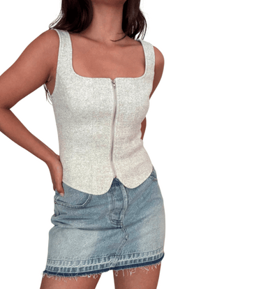 This structured corset top features a flattering square neckline, a fitted silhouette, and a functional front zipper for easy wear. Made with a smo...
