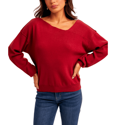 The V-neck Fixed-Wrap Knit Sweater Top is a chic, sophisticated long-sleeve style featuring an elegant fixed-wrap design. The overlapping front pan...