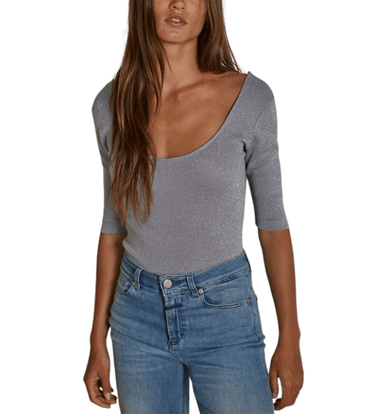 This shimmer-knit bodysuit is designed to flatter with its sleek silhouette and eye-catching metallic finish. Made from a soft blend of viscose and...