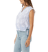 Effortless elegance meets versatile style with the Devin Striped Blouse. Crafted from soft striped cotton embroidery, this sleeveless V-neck design features a refined collared center front and adjustable side drawstrings at the hem. Cinch and knot the drawstrings to customize your fit and silhouette. Lightweight and breathable, it's an ideal layering piece for spring and summer wardrobes.