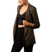 This collarless longline blazer features a soft shawl neckline and 3/4-length ruched sleeves for a polished yet effortless look. Designed in a solid finish with an unlined construction, it offers lightweight structure that’s perfect for layering over both casual and dressier outfits.