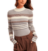 This ribbed sweater top features a variegated stripe pattern and a mock neckline for a polished yet modern look. Designed with long sleeves and a soft, comfortable stretch, it’s an easy piece to dress up or wear casually.