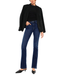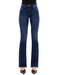 These high rise bootcut jeans feature a dark wash with a classic non-distressed finish for an easy everyday look. Designed with comfortable stretch, a traditional five-pocket style, and a zipper fly, they offer a flattering fit with an 8-inch leg opening. The rise measures 10 inches with a 32-inch inseam in size 5/26. Made from a blend of 92.7 percent cotton, 5.7 percent polyester, and 1.6 percent spandex for the perfect balance of comfort and structure.