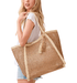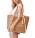 Two Tone Woven Straw With Tassel Tote Bag